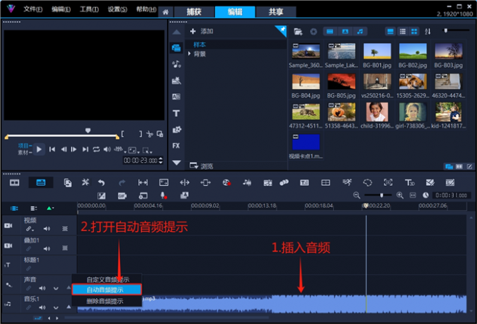 卡点对齐是视频剪辑中非常关键的一环,尤其在音频和视频素材较多时,手动对齐经常会出现失误。会声会影视频剪辑软件提供了“自动音频提示”功能,它可以快速标记音频中的“节奏点”。当素材靠近这些节奏点时,软件会自动吸附素材,确保卡点能够精准对齐。下面我将结合实际案例,演示用会声会影作卡点视频的操作步骤。