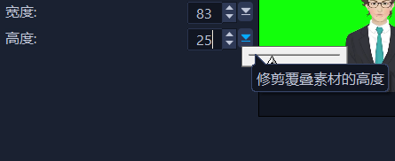 1.除了调整相似度外,在色度键去背的菜单中,还可以对画面的宽度和高度进行调整。通过修改数值或者滑动滑块的方式,来对覆叠素材进行调整。